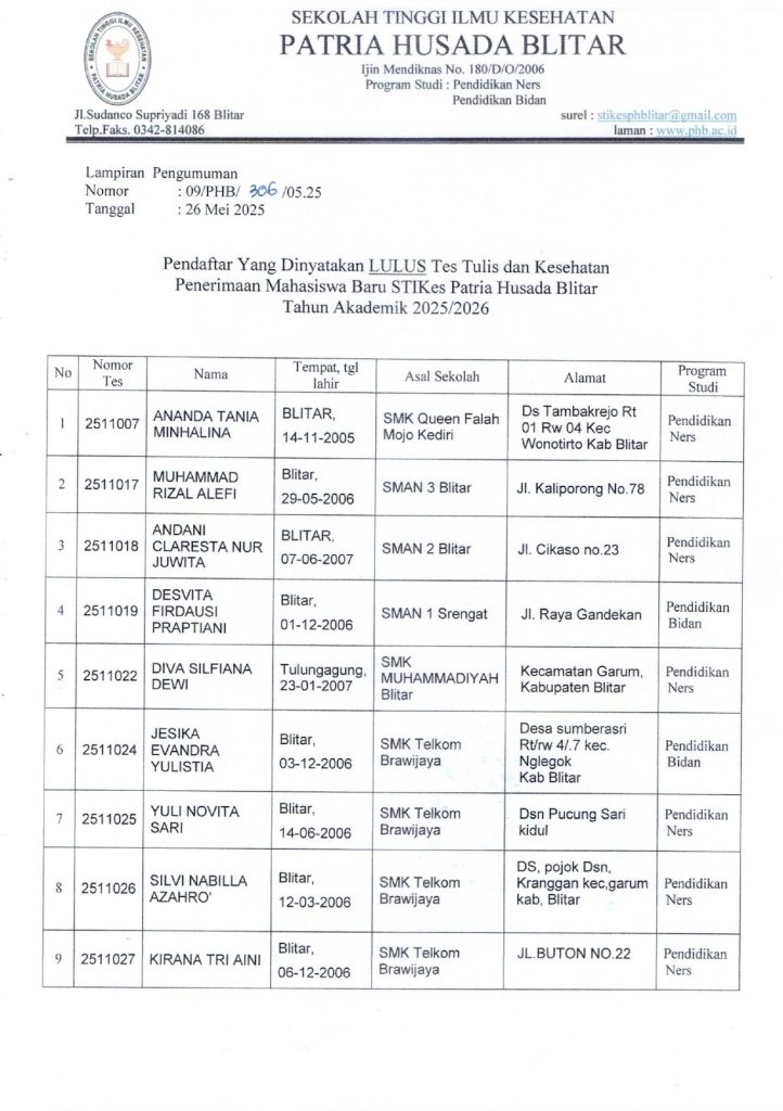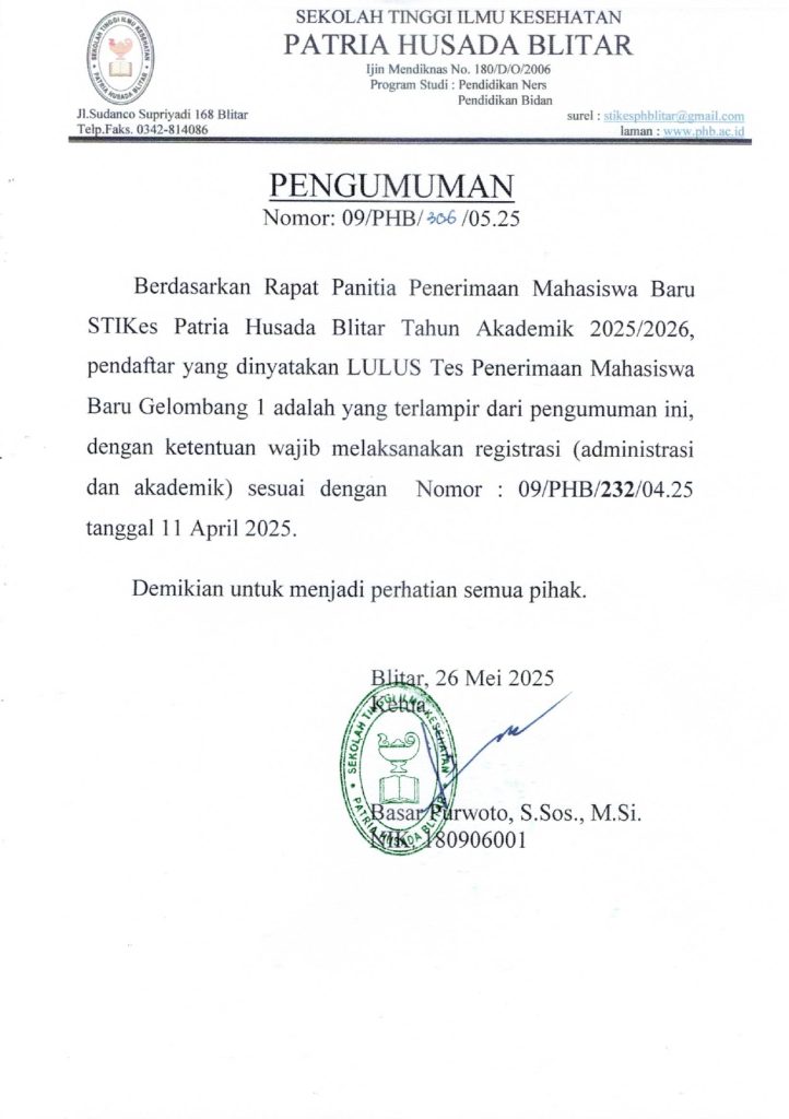 Pengumuman Penerimaan Mahasiswa Baru Gelombang 1 TA. 2025/2026