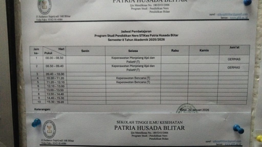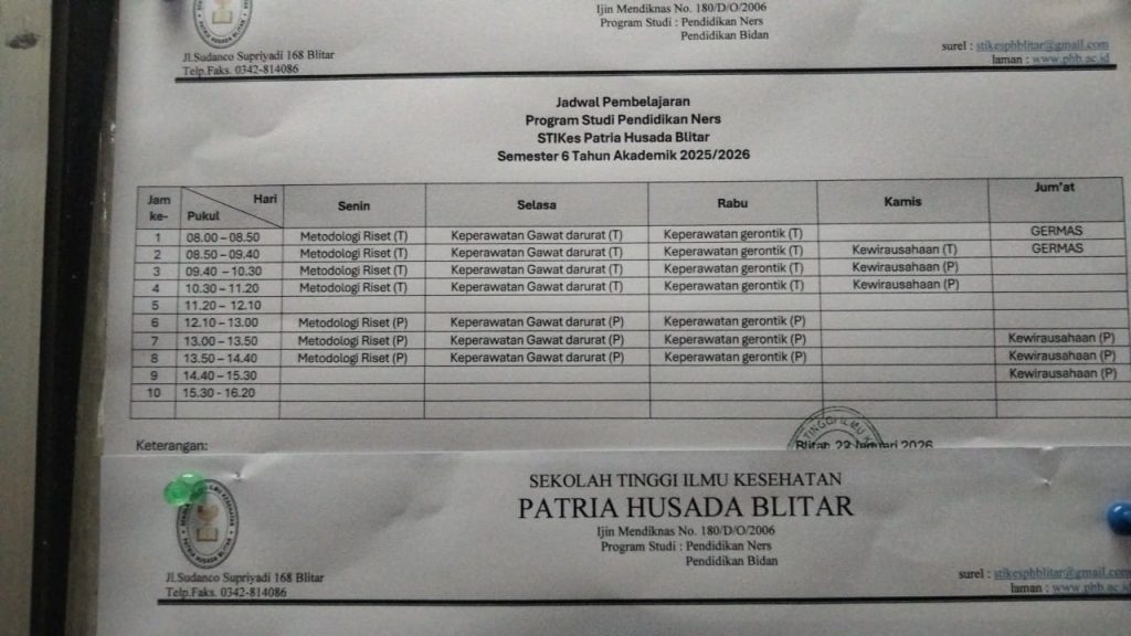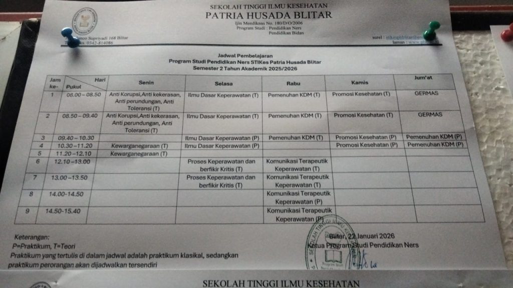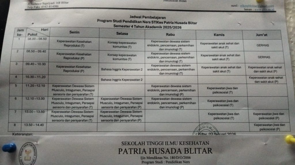 I. Jadwal Kuliah Program Studi Pendidikan Ners Semester Genap 2025/2026